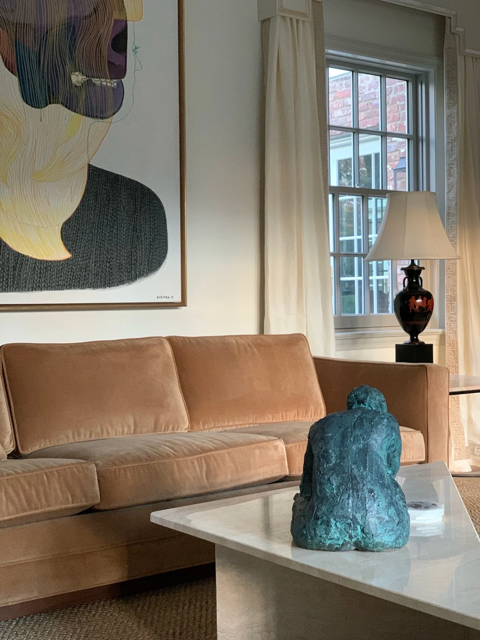 A New York City apartment that curated a collection of furniture to support an extensive contemporary art collection. These timeless pieces are balanced with rich textures and saturated colors to show off the art and highlight the spectacular view of the Hudson River.